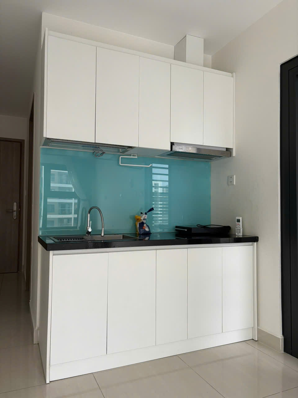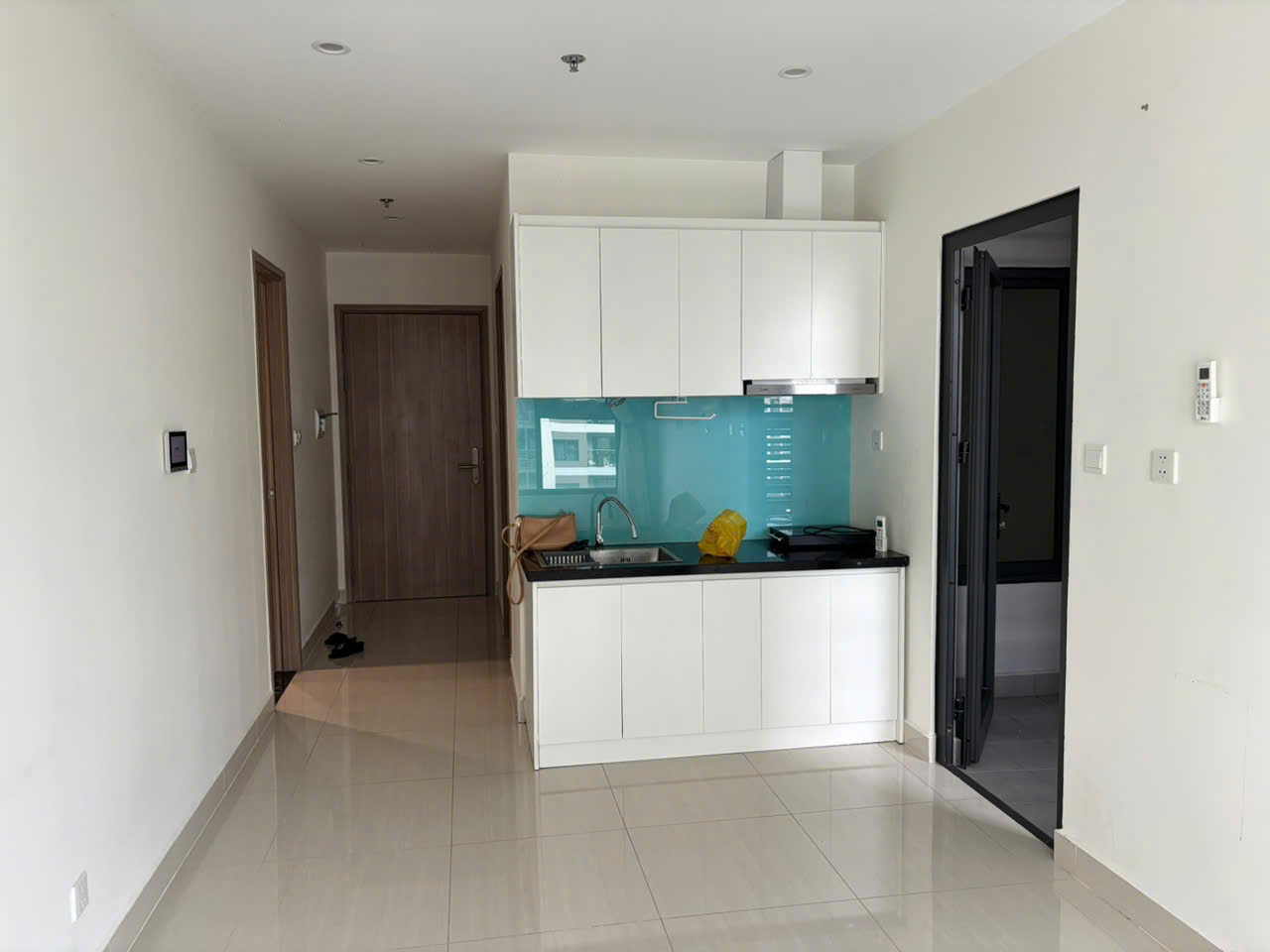 Thiết bị có sẵn trong căn hộ: 2 máy lạnh, bếp và hệ thống hút mùi, máy gọi nội bộ intercom