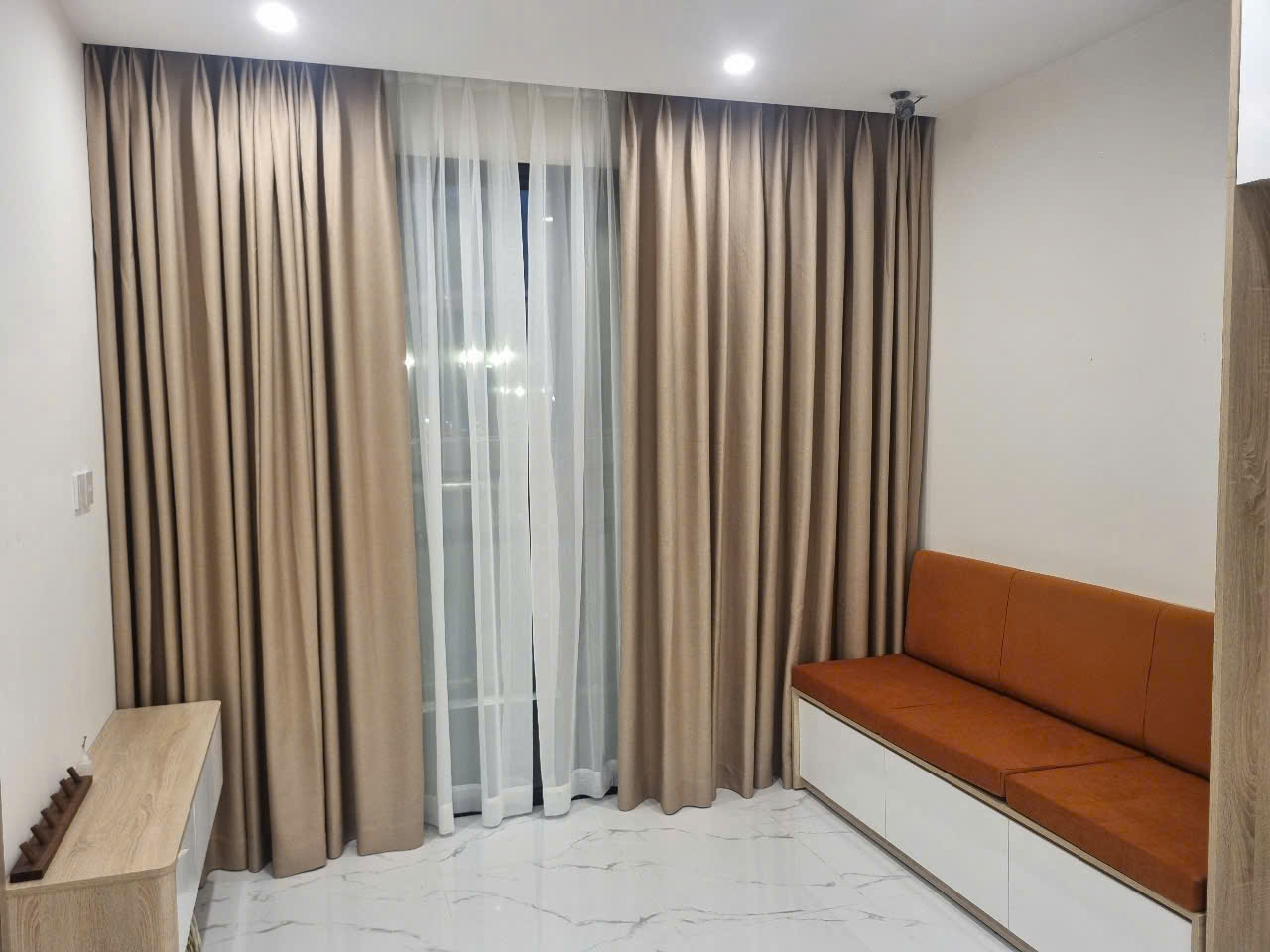 Trang bị đầy đủ: sofa, bàn ăn, tủ lạnh, máy giặt, máy lạnh, giường, tủ quần áo, rèm cửa, bếp từ, máy hút mùi,…