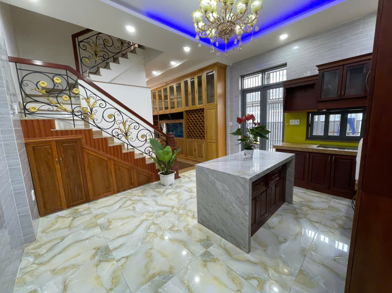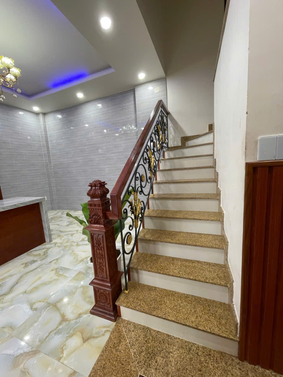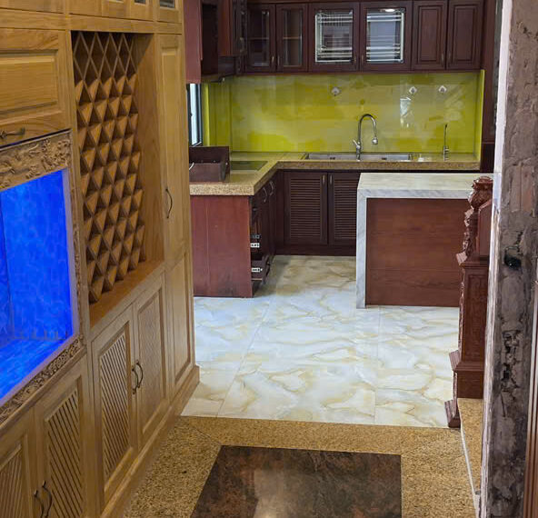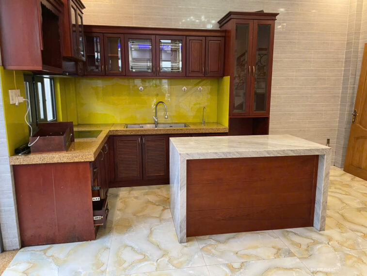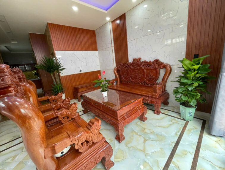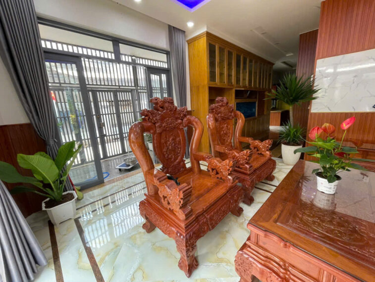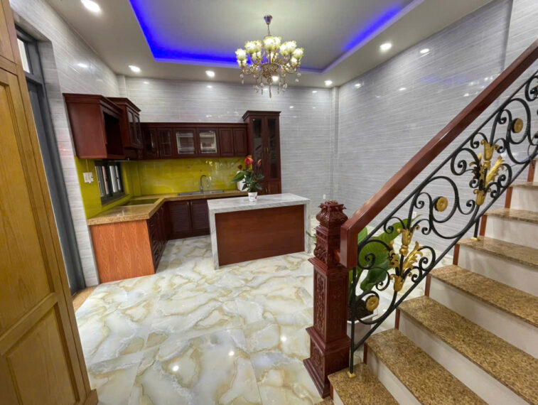 Kết cấu: 1 trệt 3 lầu gồm 4 phòng ngủ, 1 phòng thờ, 5 nhà vệ sinh.