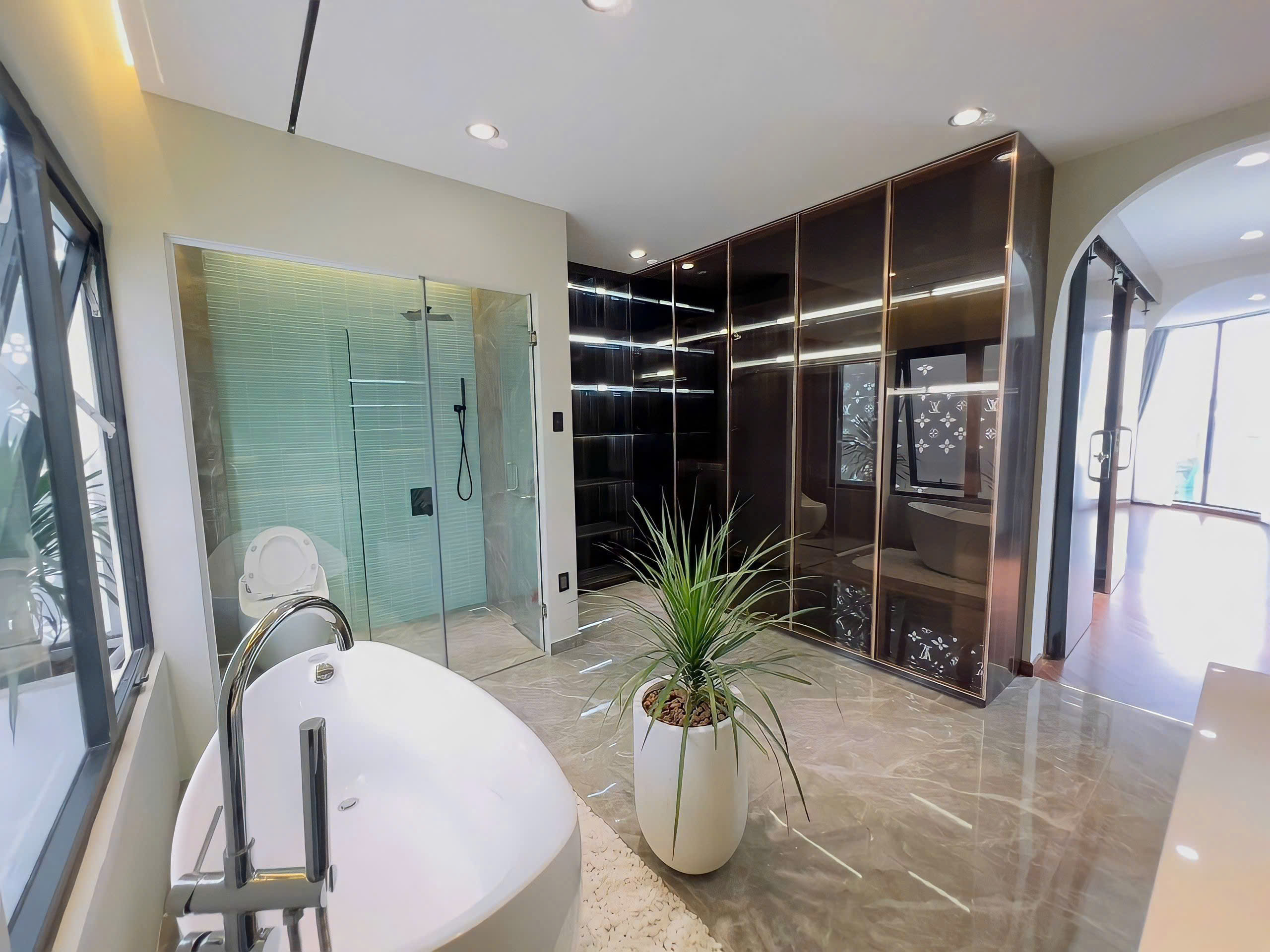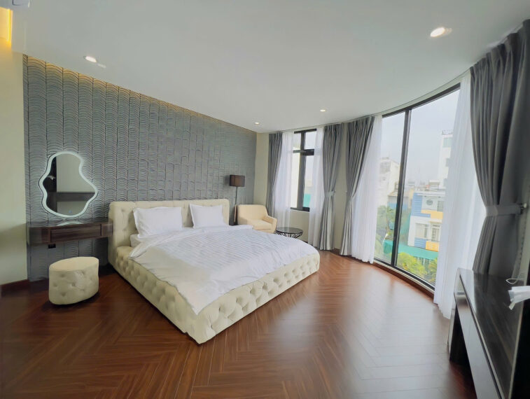 Kết cấu: 1 trệt 5 lầu gồm 4 Phòng ngủ lớn, phòng gym, phòng khách, phòng ăn, bếp, phòng phơi, sân thượng lớn