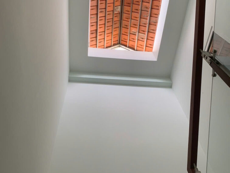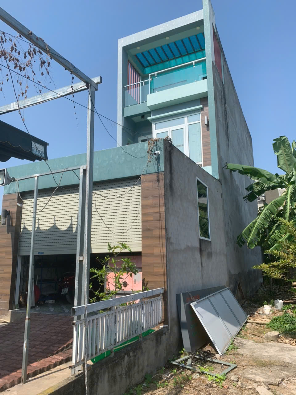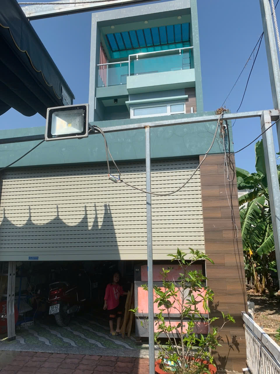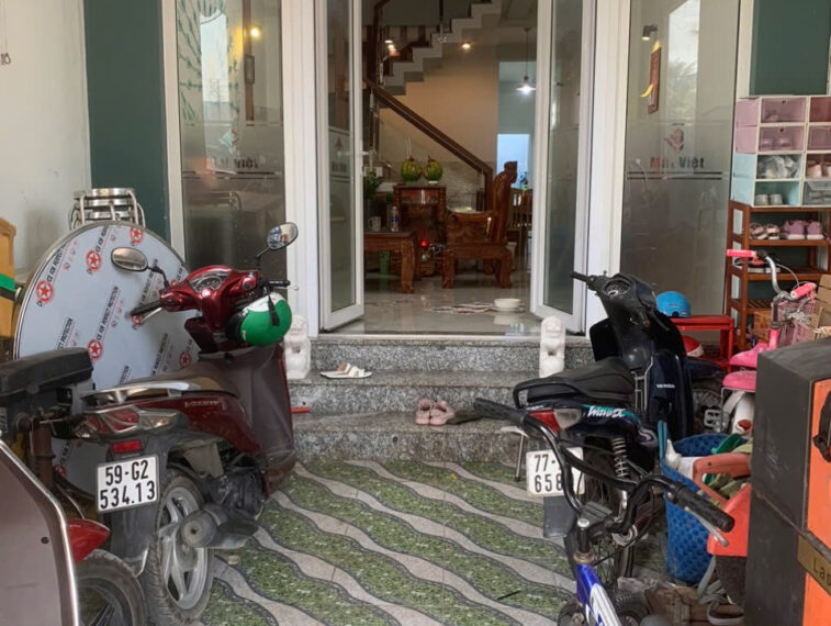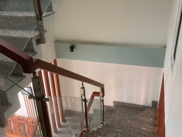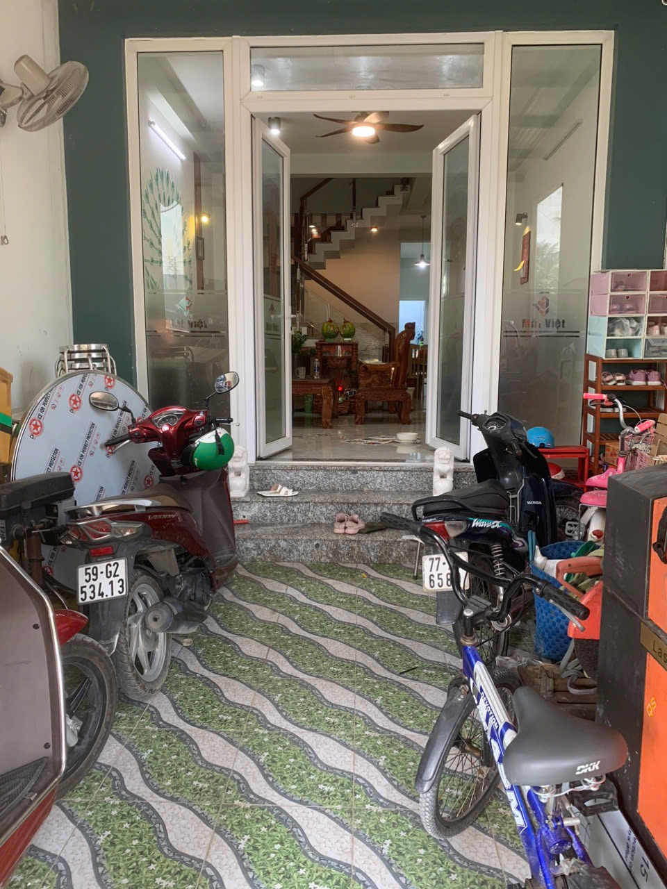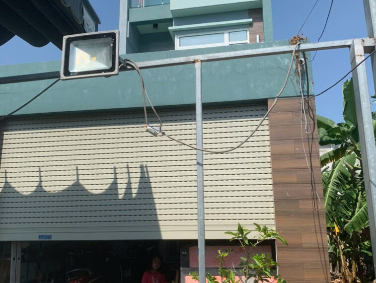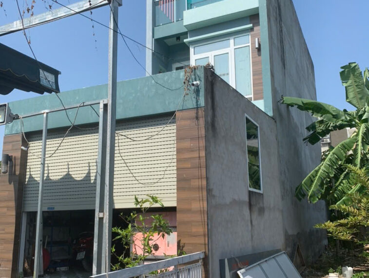 Nhà xây dựng kiên cố, 1 trệt 2 lầu, mái đúc bê tông cốt thép.