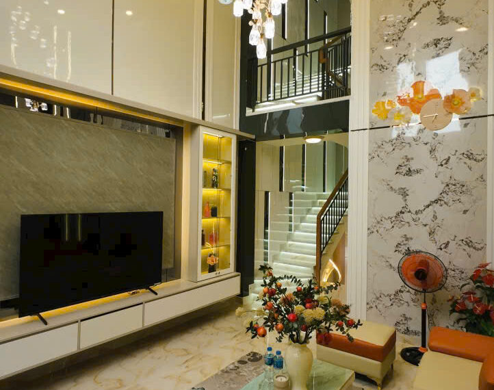 Kết cấu: 1 trệt 3 lầu gồm 4PN, 6WC, Phòng thờ, phòng khách riêng biệt