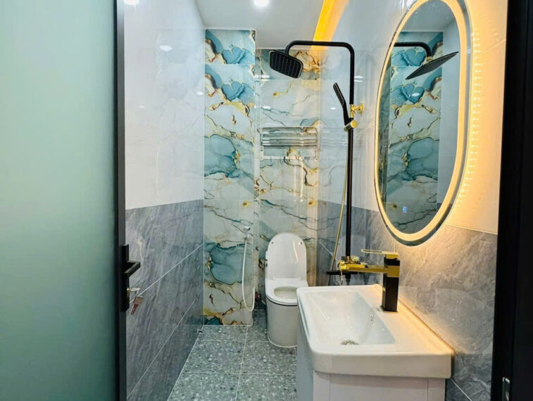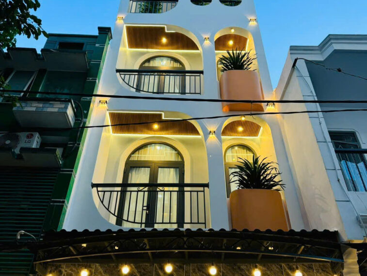 Kết cấu: 1 trệt 2 lầu gồm 4PN, 5WC, sân thượng trước sau