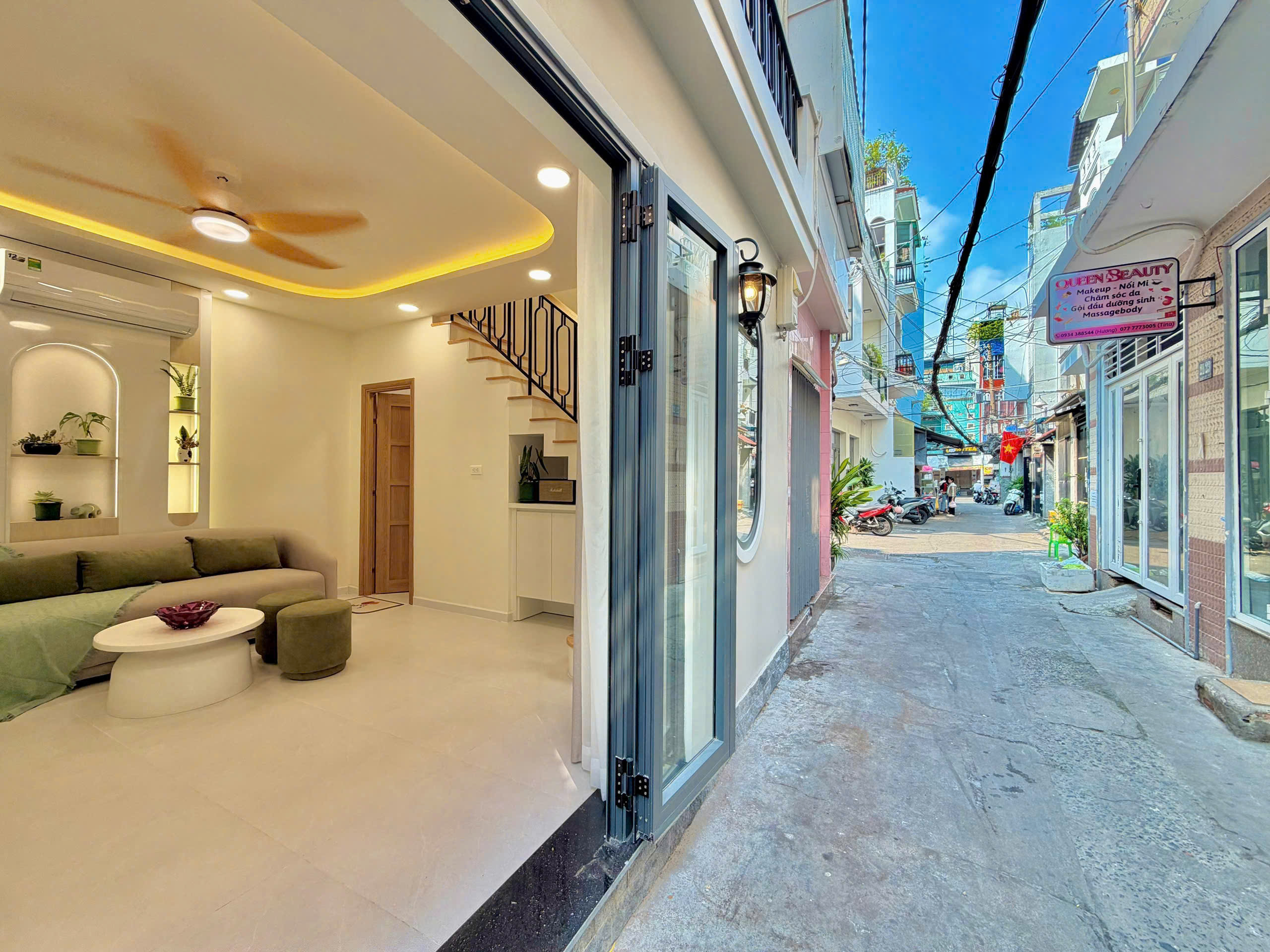 Hẻm trước nhà rộng rãi, ô tô vào thoải mái