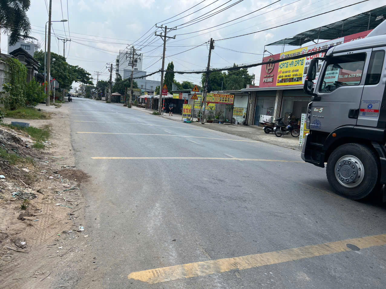 Đường rộng, container, xe tải lớn ra vào thoải mái