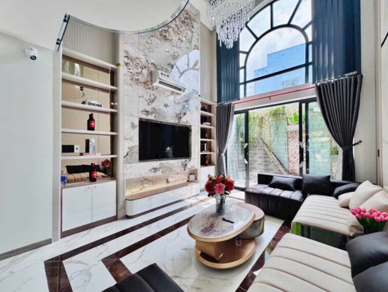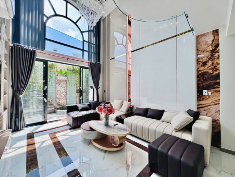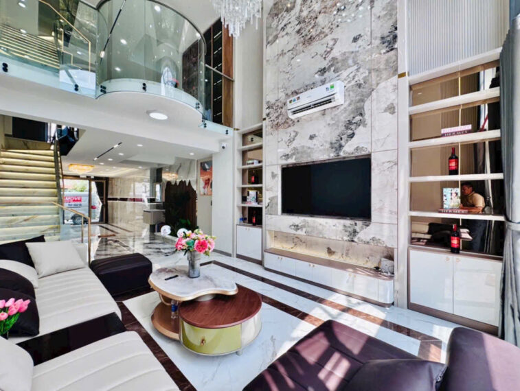 Kết cấu: 1 trệt 2 lầu+ lửng gồm 4PN, 2WC, bếp, Phòng khách sang trọng