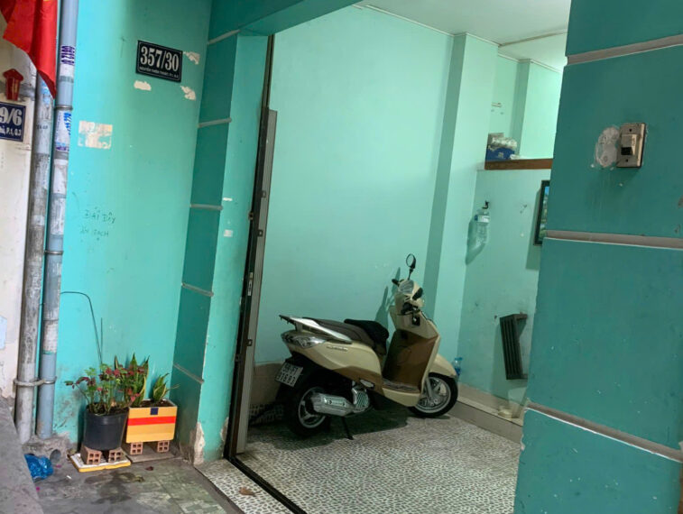 – Chiều ngang mặt tiền 3,01m , chiều dài 23,5m. Nhà nở hậu (Đuôi nhà 3,8m , giữa nhà 5,9m), có cửa sau thông ra hẻm 4m.