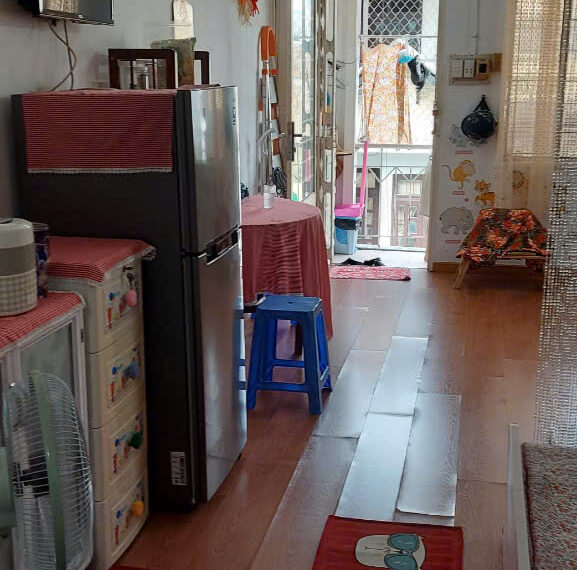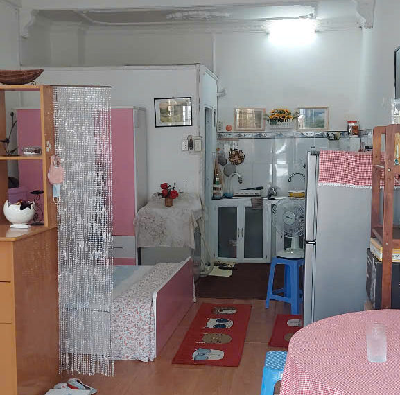 DT 33m², 1 phòng ngủ, phòng khách rộng có ban công, bếp thoáng, nhà đẹp.