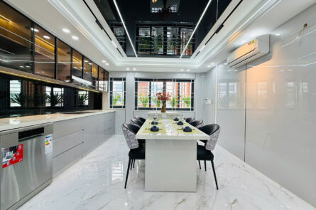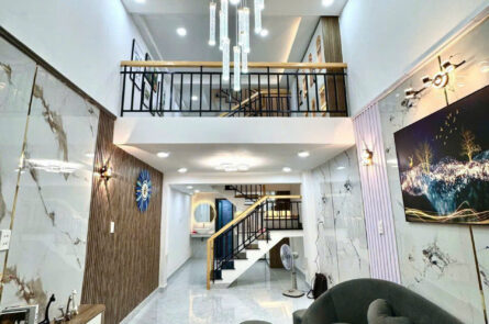 Vị trí: Đường số 5, P.17, Gò Vấp Diện tích: 51 m2 Kết cấu: 1 trệt 2 lầu+lửng, sân thương gồm 3PN, 3WC Nhà có trang bị thang máy 450kg chất lượng.